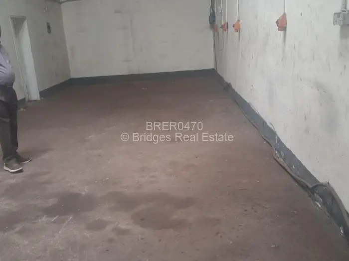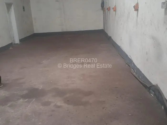 Utilities and securities are excluded. Municipal water is connected, and water tanks on site mean supply interruptions don't have to stop work. Zesa connection is described as reliable. The boundary walling gives the property a defined perimeter, with the forecourt providing off-street parking or staging space in front of the unit.