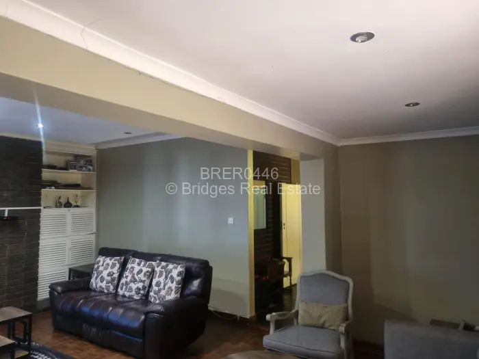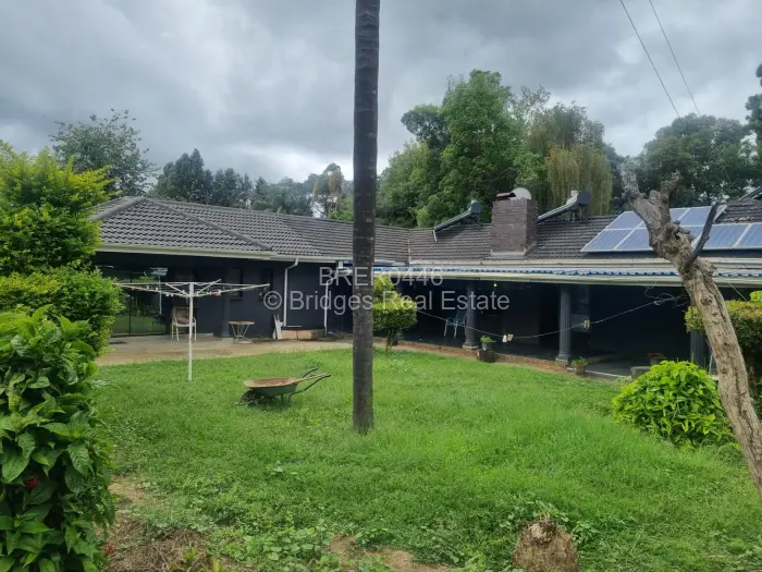 Nestled in The Grange, Harare, within 20 kilometers from the CBD, is this stunning single-storey residence, rendered and painted to perfection, under concrete roof tiles on timber trusses and purlins. Sitting pretty on 4612 square meters of gently sloping land with Title Deeds, the property boasts of excellent flow of rooms, comprising an entrance hall, four spacious bedrooms (MES), two more with en-suite toilets and bath facilities, open-plan lounge and dining area ,a separate family bathroom and toilet ,modern fitted kitchen with panty and scullery, study , patio/verandah, entertainment area, and triple lock-up garage.